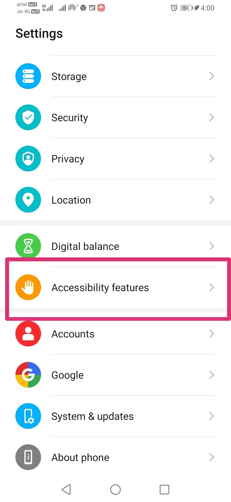 उसके बाद accessibility features को open करें