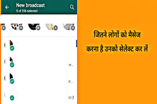 उसके बाद new broadcast को खोल लें और उसके बाद आपको जाना है जितने लोगों को मैसेज करना है उनको सेलेक्ट कर लें
