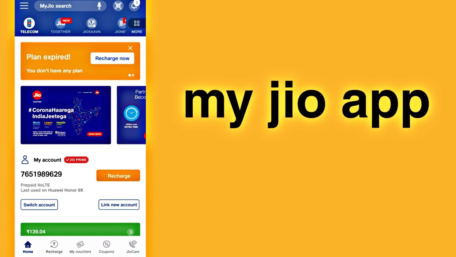 आपके पास जिओ app है तो उसको ओपन कर लें