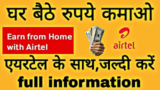 दोस्तों आप भी अगर घर बैठे रुपए कमाना चाहते हैं तो इस आर्टिकल को पूरा जरूर पढ़ें आज हम आपको बतायंगे घर बैठे रुपए कमाने का तरीका जी दोस्तों आपको करना बस इतना हैं की अपने मोबाइल मैं एयरटेल एप को डाउनलोड कर लीजिये और उसमें आपको