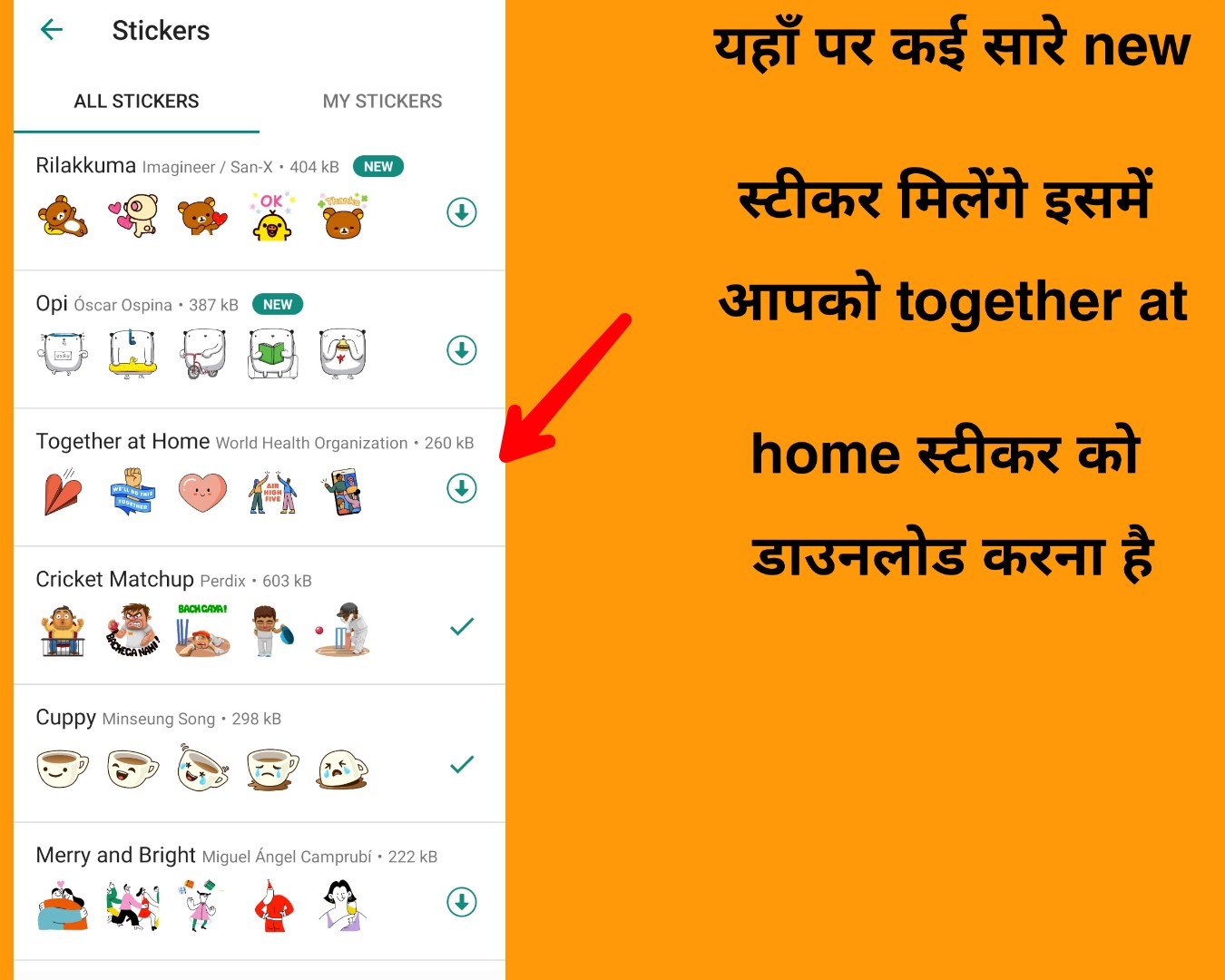 इसके बाद आपको together at-home स्टीकर का ऑप्शन है उनको डाउनलोड करलें